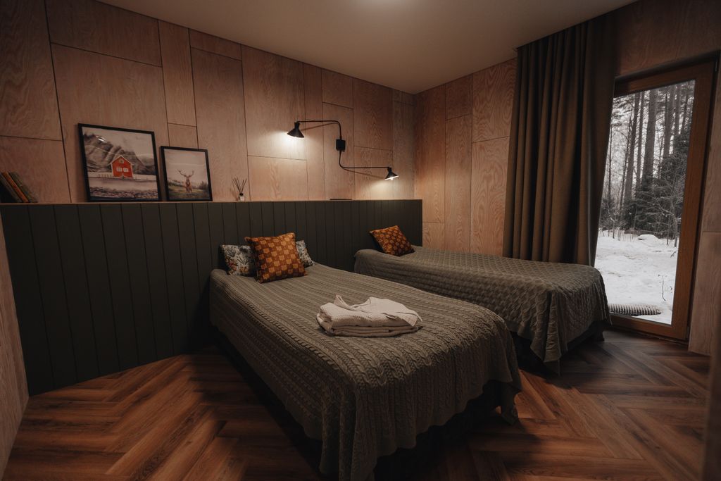 Добро пожаловать в «волшебный лес» - место, где природа и комфорт встречаются, чтобы создать незабываемый опыт отдыха для вас и ваших близких. Расположение в экологически чистой природной зоне позволяет отвлечься от суеты будней и благотворно влияет на здоровье. При этом, мы располагаемся в 15 минутах от исторической части Выборга и в 1, 5 часах от Санкт-Петербурга. На территории есть все необходимое для реализации ваших заветных желаний. Чистый воздух, беседки для уютных посиделок, комфортабельные коттеджи для отдыха без лишних забот, бани для лёгкости души и тела, практически безграничные, как и окружающий лес, возможности для организации вашего выездного мероприятия. Дом 71 м2 Спальни с кроватями 160 и 180 см или 2 кровати по 90 см В гостиной раскладной диван спальное место на 140 см Кухня оборудована всем необходимым для приготовлении пищи и сервировки стола. Холодильник, морозильная камера, свч, варочная поверхность, кофемашина и чайник. Smart tv и умная колонка, wi-fi для заез