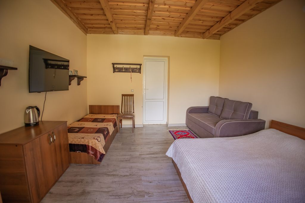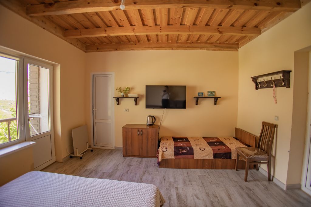 Дом располагается в уединенном природном уголке Гунибского района, неподалеку от Салтинского водопада и в близком окружении других туристических локаций района. Наш дом станет идеальным местом для тихого семейного отдыха для тех, кто мечтает отдохнуть на природе в горах с удобствами городского проживания. Доехать до дома из аэропорта Махачкалы можно за 2,5 часа на автомобиле. Сам корпус дома одноэтажный, располагает тремя просторными номерами. Все комнаты оформлены в уютном стиле, строение дома из природного камня. Для гостей имеется удобная мебель в номерах, холодильник, телевизор, Wi-Fi. В ванной комнате есть стандартная сантехника, полотенца и банно-косметические принадлежности. В доме имеется выделенная помещение с кухней и имеются все удобства для приготовления еды. В летний период есть возможность заказать еду на территории дома. Во дворе дома оборудованы 2 беседки с мангалом и самоваром для уютных посиделок. Также развешены гамаки и установлен стол для настольного тенниса. Не