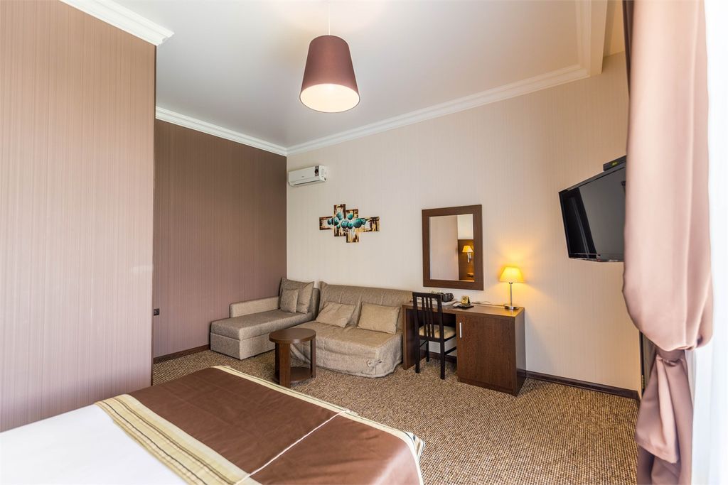 Отель расположен на очень тихой улице в самом центре Геленджика, 400 метров до центрального парка развлечений, 600 метров до центральной набережной и песчаного пляжа. Бронируй номер и получи: Безопасность в отеле и комфорт в номерах. Шикарные завтраки. Идеальную чистоту. Парковку. Wi-fi на всей территории отеля. Ежедневные уборки в номерах. Замену белья раз в 3-4 дня. Ежедневную замену полотенец. Кулер с горячей и холодной водой на каждом этаже. Все номера отеля имеют: Отличный дизайн. Высокие потолки - 3. 4 метра. Шторы блэкаут, не пропускающие свет. Ортопедические матрасы. Фен сейф. Жк- телевизор. Сплит систему. Мини холодильник..