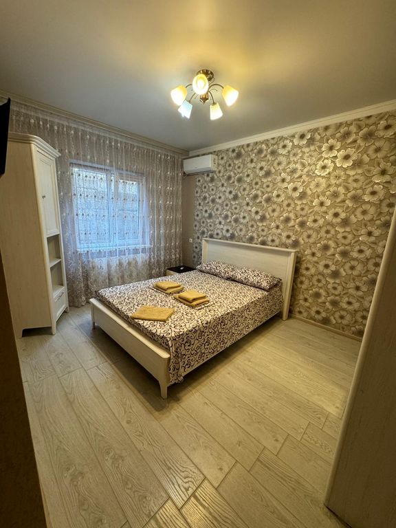 Номера оборудованы новой качественной мебелью, кондиционерами, кабельным tv, бесплатным wi-fi, стиральной машинкой, гладильной доской, утюгом+ фен. До моря 15−20 минут спокойным шагом, до центра 10 минут. В шаговой доступности магазины, аптека, автобусная остановка. В нашем зелёном дворе находится большая мангальная зона, отдельная оборудованная летняя кухня-веранда, в которой имеется весь кухонный инвентарь для приготовления пищи: холодильник, посуда, электроплита, мультиварка, микроволновка, чайник. Возможна организация увлекательной поездки в горы — джиппинга!