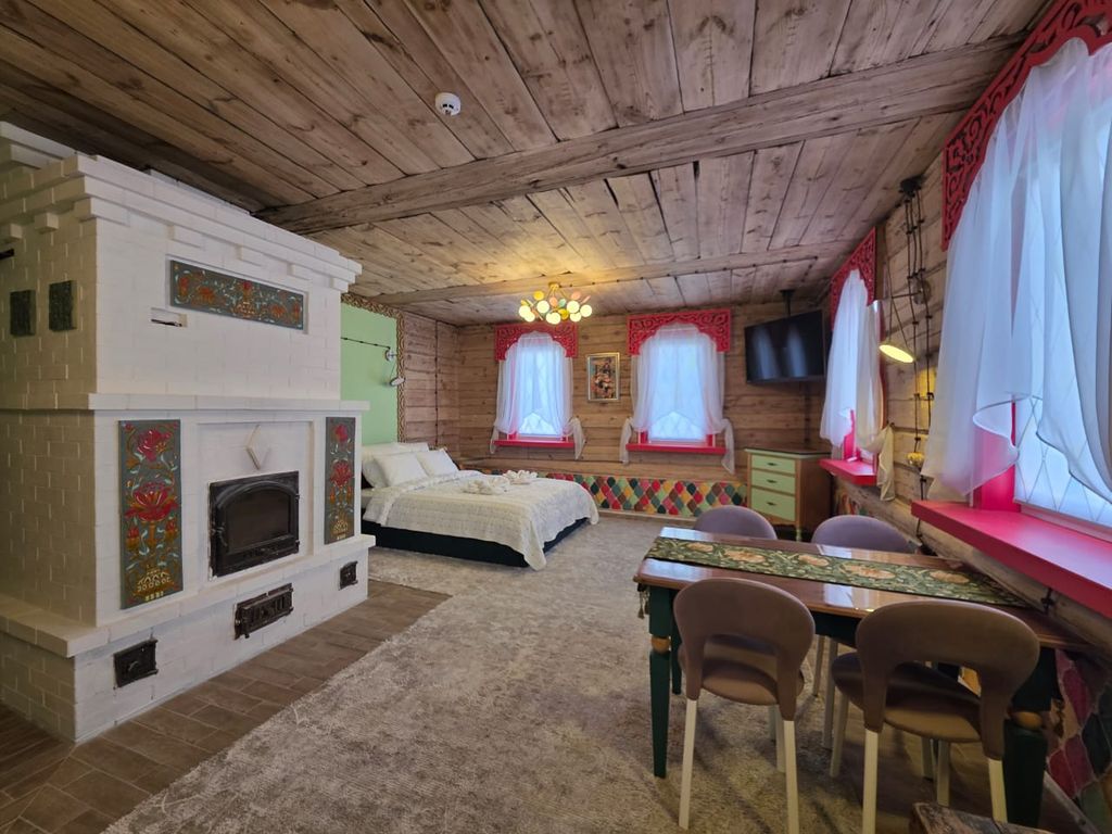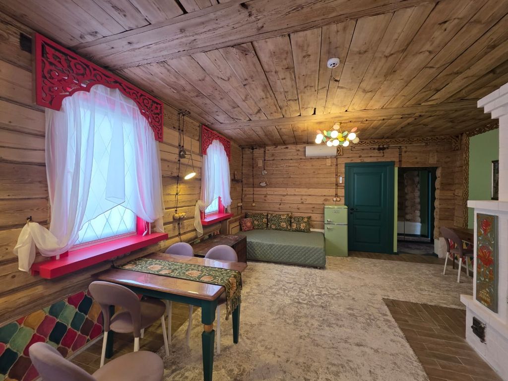Старинный деревянный дом из сруба с атмосферой русской сказки. Всего четыре уютных номера — по два на каждом этаже. В номерах на втором этаже предусмотрен подъем на небольшую мансарду, где можно отдохнуть или удобно разместить детей. Для юных гостей предусмотрен проектор для просмотра мультфильмов. Каждый номер оборудован всем необходимым для комфортного семейного проживания: есть собственный санузел, а на этаже — общая кухня на два номера. ХудожникаДОМ расположен рядом с Ростовским кремлем, озером Неро и другими достопримечательностями.