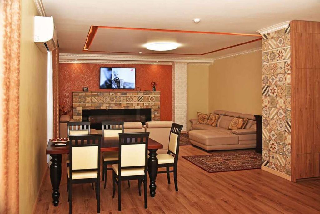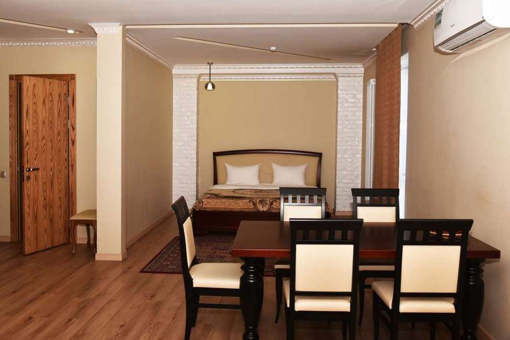 Гостевой дом находится не далеко от центра города, расположен рядом с удобной транспортной развязкой, имеется бесплатная парковка, которая находится под видеонаблюдением. Сдан в эксплуатацию в 2018 году, выполнен в авторском дизайне и эксклюзивном стиле. На ваш выбор есть 8 номеров различных категорий, с индивидуальным интерьером и мебелью из ценных пород дерева. Гости могут воспользоваться дополнительно такими услугами как: бассейн, сауна, хаммам.