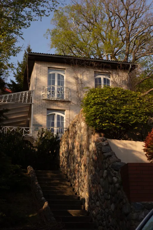 Особняк во Французском стиле в центре курортного города Светлогорск. Располагается на берегу «Тихого озера». С него открывается прекрасный вид. Место очень красивое. Одно из самых старых мест Калининградской области, именно тут образовались первые поселения Кёнигсберга, рыбацкая деревня на дюне, вблизи «Мельничного пруда». У дома большая ярусная придомовая территория с зоной для завтрака, открытой террасой с видом на всё озеро и зоной барбекю (имеется садовая мебель). Есть гараж, парковочные места 2х и более авто. Вся территория огорожена. Много редких цветущих растений, терраса подсвечена в вечернее время. Дом полностью укомплектован техникой и мебелью, посудой, бокалами для вина, роксами. Нашим дорогим жильцам предоставляем гигиенические наборы, зубная щетка и паста, комплекты полотенец. Дом строился и эксплуатировался как загородная семейная резиденция. Внутри есть старинный камин с надписью «Königsberg», камин из гранита, гранитная лестница и обеденный стол в зале. Очень много