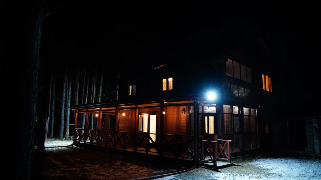 Большой дом на берегу озера в сосновом бору. Веранда с обеденной зоной 3 санузла Сауна на 2 человека Мангальная зона Место с зоной костра с удобными скамейками Плита, холодильник, чайник, микроволновая печь, утюг Музыка и тv