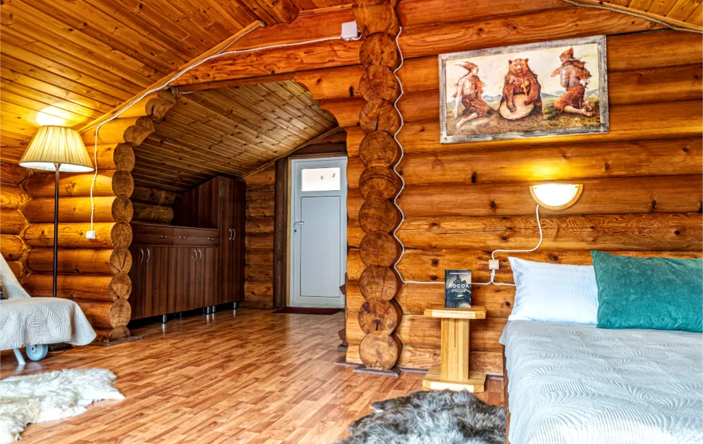 Номер на 4-х гостей с большой кроватью и раскладным диваном. В номере также есть журнальный столик, кресла, шкаф. В стоимость входит постельное белье. Есть фен. По желанию можно поставить обогреватель.