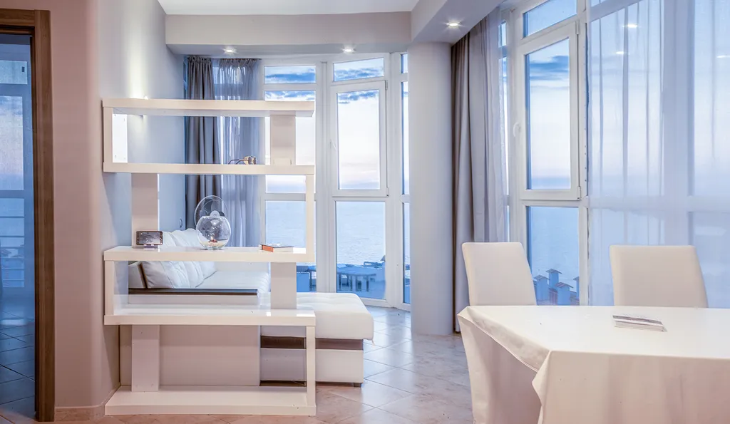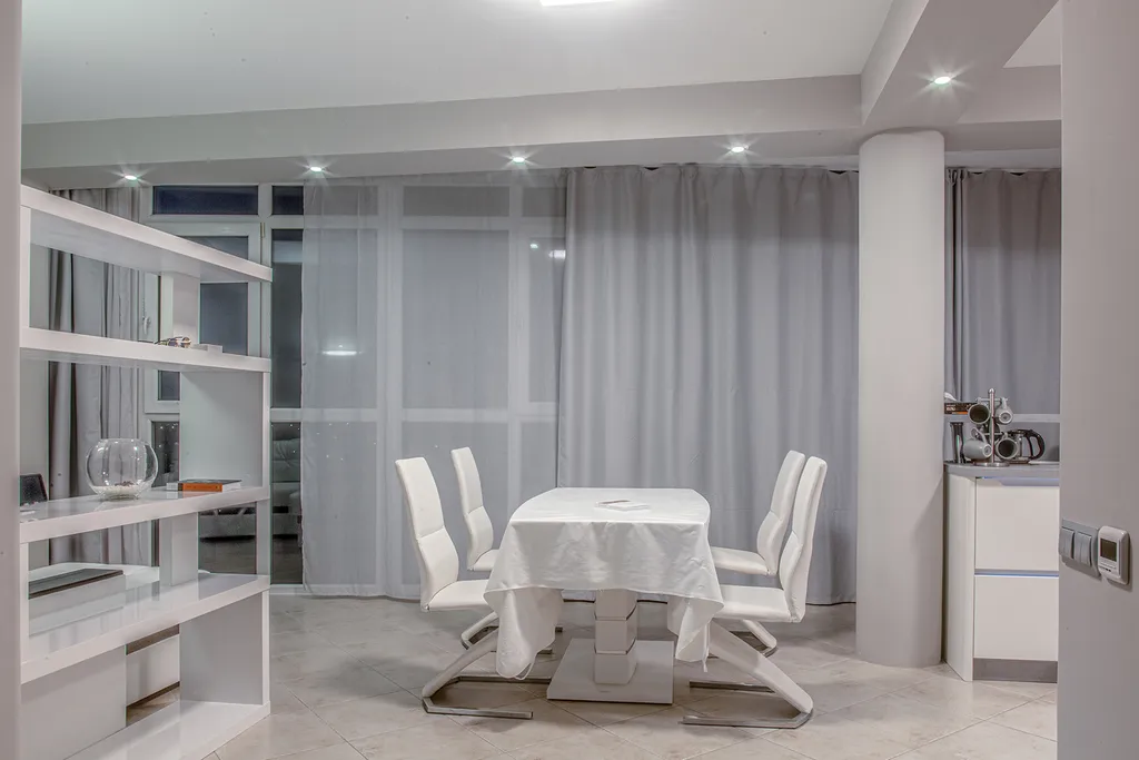 Пентхаус двух уровневая студия, общая площадь с большим балконом-террасой 128 м. кв. Celestial studio переводится как Поднебесная и своё название получила в связи с необычайными, великолепными видами с балкона-террасы и из окна (см. прилагающиеся фото). В летнее время с балкона- террасы можно насладиться волшебными морскими закатами. А в весеннее осеннее сезоны можно почувствовать себя даже богом Зевсов, увидев облака у себя под ногами. Студия двух этажная (5-6этаж, 6 этажного здания), на нижнем этаже имеется большая гостиная с большой кухней, барным столом, панорамными окнами от пола до потолка, и панорамным видом на море. В другом конце гостиной имеется угловой двух спальный диван. Площадь гостиной 34м.кв. Так же на нижнем этаже имеется спальня, прихожая со встроенным шкафом купе, душевая с туалетом и лестница на второй этаж. Верхний этаж мансарда с выходом на 30 метровый. балкон-террасу. Сама же мансарда верхнего этажа пентхауса представляет просторную комнату студию 35 м. кв., с че