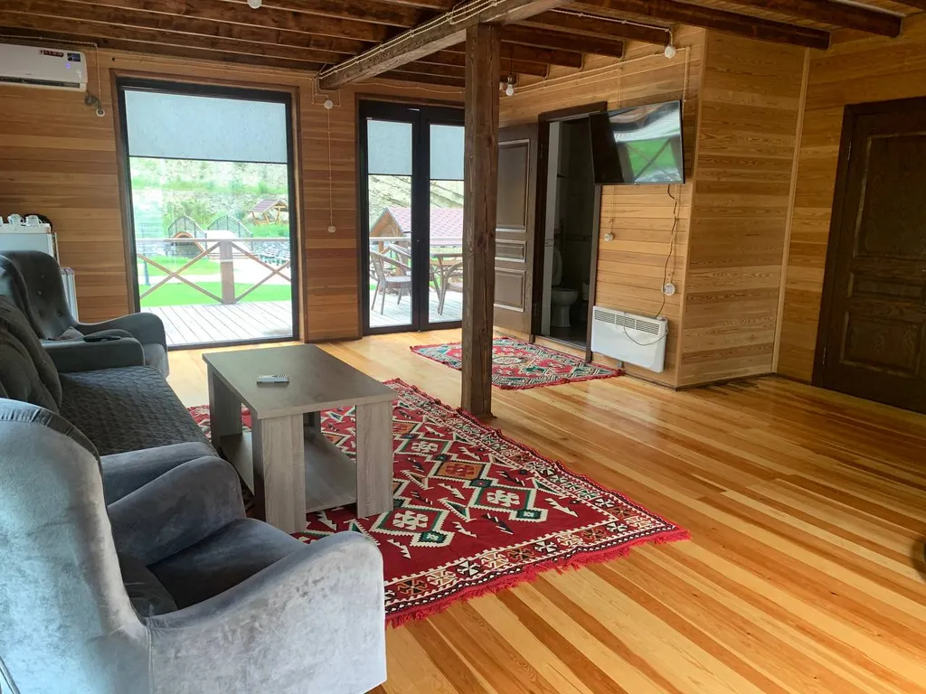 Просторный трёхкомнатный коттедж с двумя спальнями с двуспальными кроватями и гостиной с двумя двухместными раскладными диванами. С террасой.