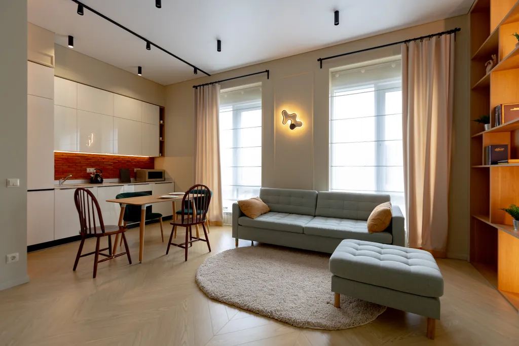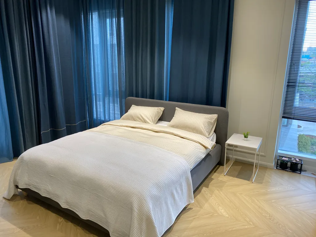 Стильная квартира в ЖК «Маринист» Центр Владивостока Квартира расположена в самом престижном жилом комплексе Владивостока - «Маринист». Рядом кафе, рестораны, магазины, набережная, кинотеатр и транспортные развязки. Просторная 2х комнатная квартира с дизайнерским интерьером Уютная гостиная с мягким диваном, пуфом и зоной отдыха Отдельная спальня с двуспальной кроватью и тёмными шторами для полноценного сна Современная кухня со всей техникой: индукционная плита, СВЧ, холодильник, чайник, духовка, посудомойка Обеденная зона Просторный санузел, стиральная-сушильная машина Удобное рабочее место, быстрый Wi-Fi Кондиционер