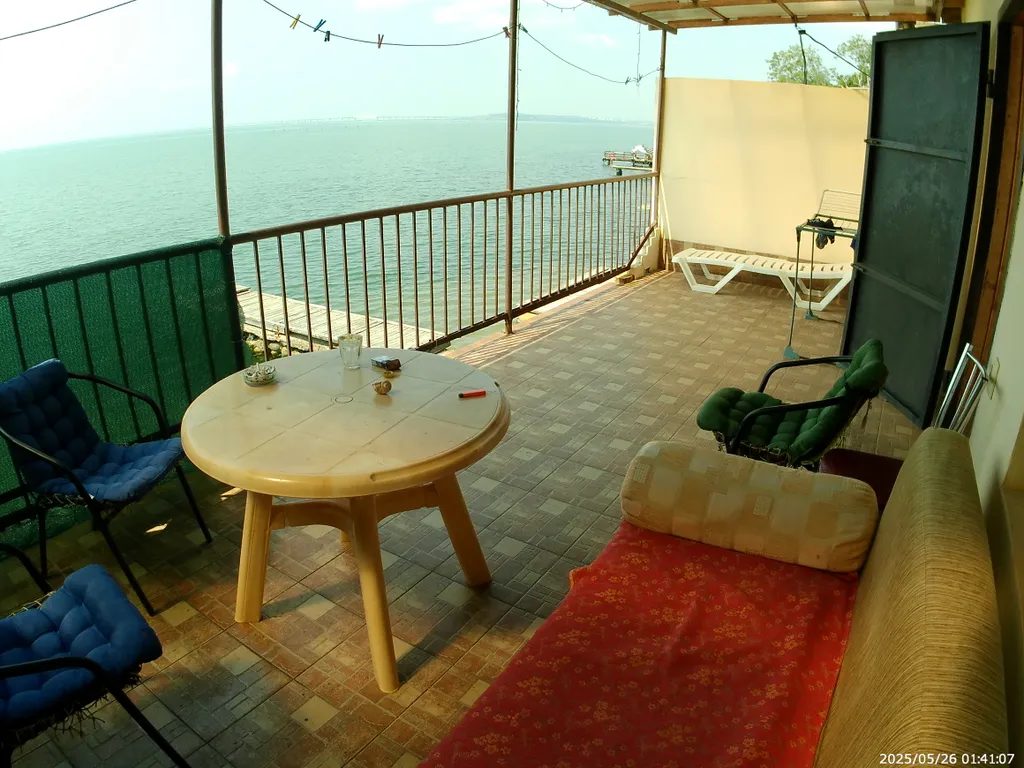 Сдам дом-эллинг на берегу Керченского пролива, 155 м2, 2 м к морю, море сразу под террасой. Три спальни с двуспальными кроватями, большая кухня-столовая 35 м2, терраса с барбекю, шезлонги. Три кондиционера. Отопление есть. Стоянка для автомобилей, свой закрытый двор, Wi-Fi. Горячая вода постоянно.